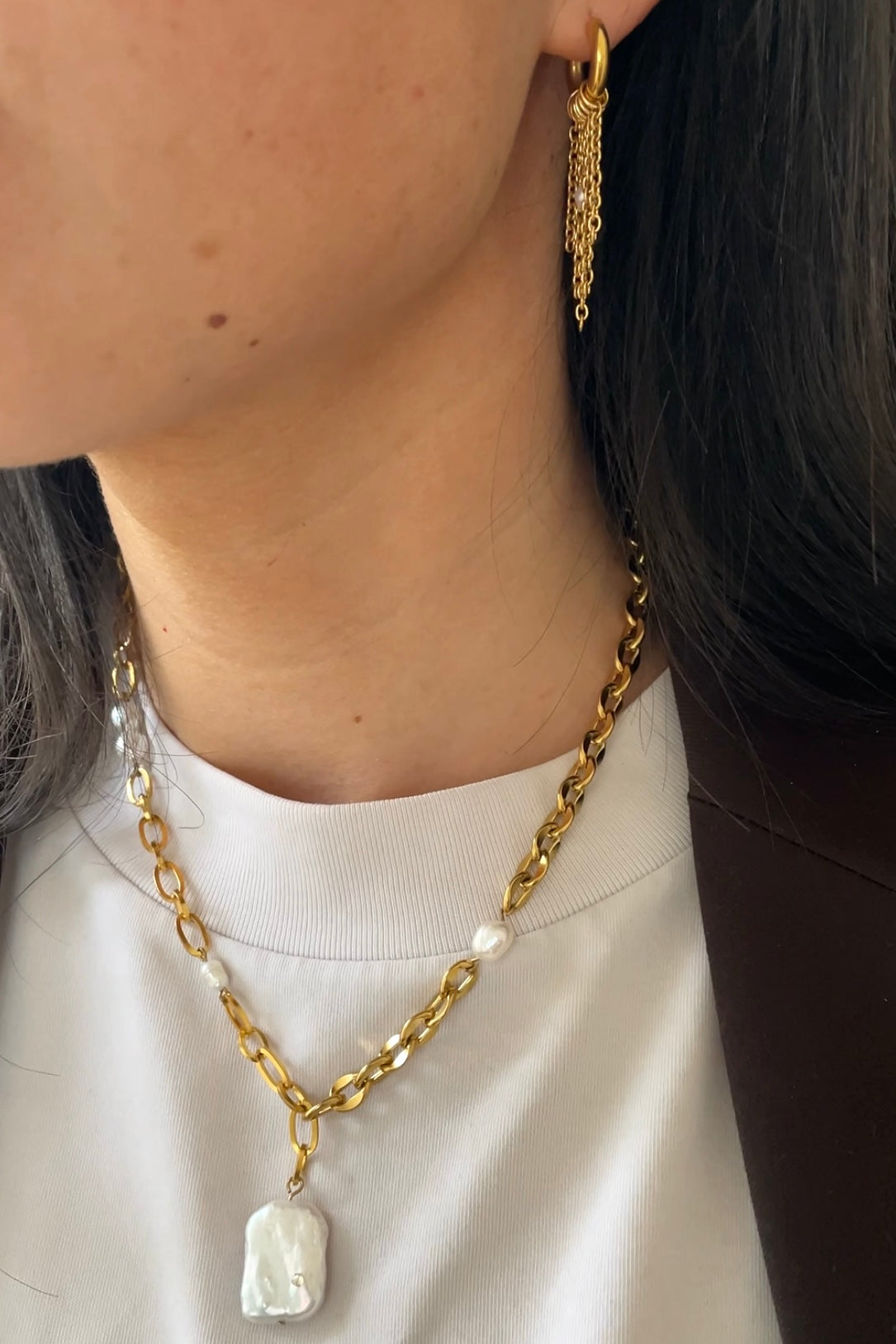 - D'un collier en perle d'eau douce, monté sur une chaîne en acier inoxydable doré